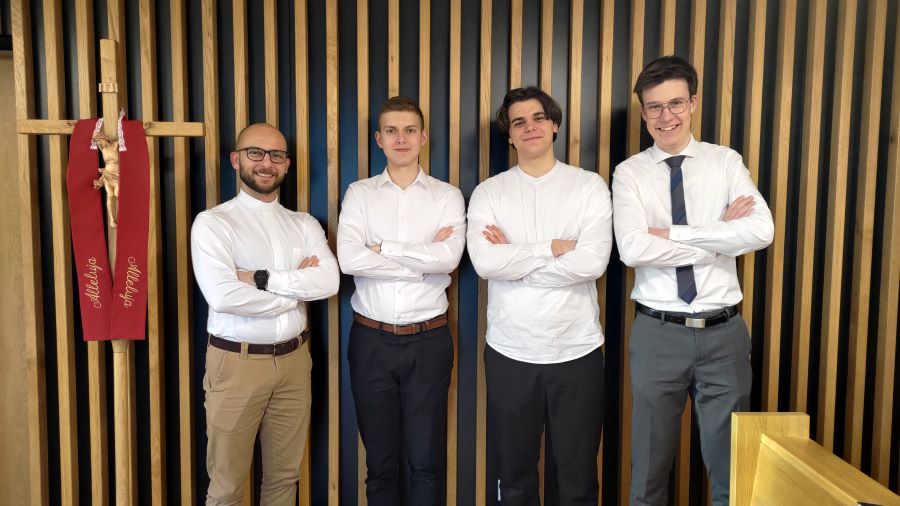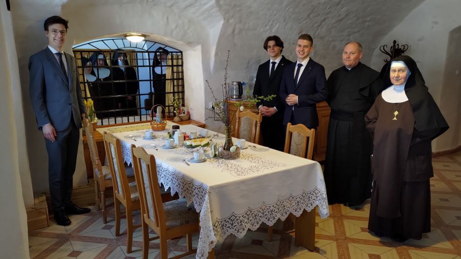 Tak oto powoli zbliżył się czas Triduum Paschalnego i oczywiście, jak w każdym domu, przed świętami trzeba było zorganizować generalne sprzątanie. Było więc dużo pracy: porządkowanie grobów zmarłych współbraci, mycie okien, pranie i prasowanie firanek, czyszczenie kostki wokół domu i wiele innych drobnych prac. Wszystkie aktywności udało się skończyć jeszcze przed Triduum i to pozwoliło przeżyć je bardziej „duchowo”, co nie tak często się zdarza. W Wielki Czwartek udaliśmy się do Świdnicy na Mszę Krzyżma, a już wieczorem uczestniczyliśmy we Mszy Wieczerzy Pańskiej pod przewodnictwem Przełożonego Prowincjalnego Prowincji Zwiastowania Pańskiego ks. Przemysława Podlejskiego SAC. Następnego dnia udaliśmy się do sióstr Klarysek na Liturgię Męki Pańskiej pod przewodnictwem naszego ojca duchownego ks. Dariusza Przybyszewskiego SAC. W sobotę o godzinie 21.00 w naszej parafii zaczęła się moja ulubiona Wigilia Paschalna pod przewodnictwem ks. proboszcza Przemysława Budzińskiego SAC, podczas której pokój zmartwychwstałego Chrystusa napełnił nasze serca. W niedzielę zaczęliśmy dzień od modlitwy jutrznią, po której przeszliśmy do refektarza na wielkanocne śniadanie, na którym zebrała się cała wspólnota domowa. O 12.00 udaliśmy się na Mszę św. pod przewodnictwem ks. rektora. Po obiedzie mieliśmy czas, żeby zanieść tę radosną nowinę naszym najbliższym (niestety tylko przez telefon), a już wieczorem świętowaliśmy Zmartwychwstanie Pana naszego w towarzystwie ks. Mariusza – prefekta alumnów roku propedeutycznego diecezji świdnickiej i legnickiej, którego poznaliśmy wcześniej na naszych wspólnych sesjach warsztatowych z rokiem propedeutycznym. W wielkanocny poniedziałek znowu udaliśmy się do sióstr Klarysek na Mszę św. a po niej na kawę świąteczną z siostrami, na której (jak zawsze u sióstr) było niesamowicie smaczne ciasto.